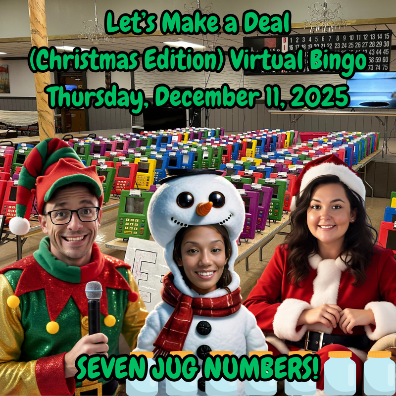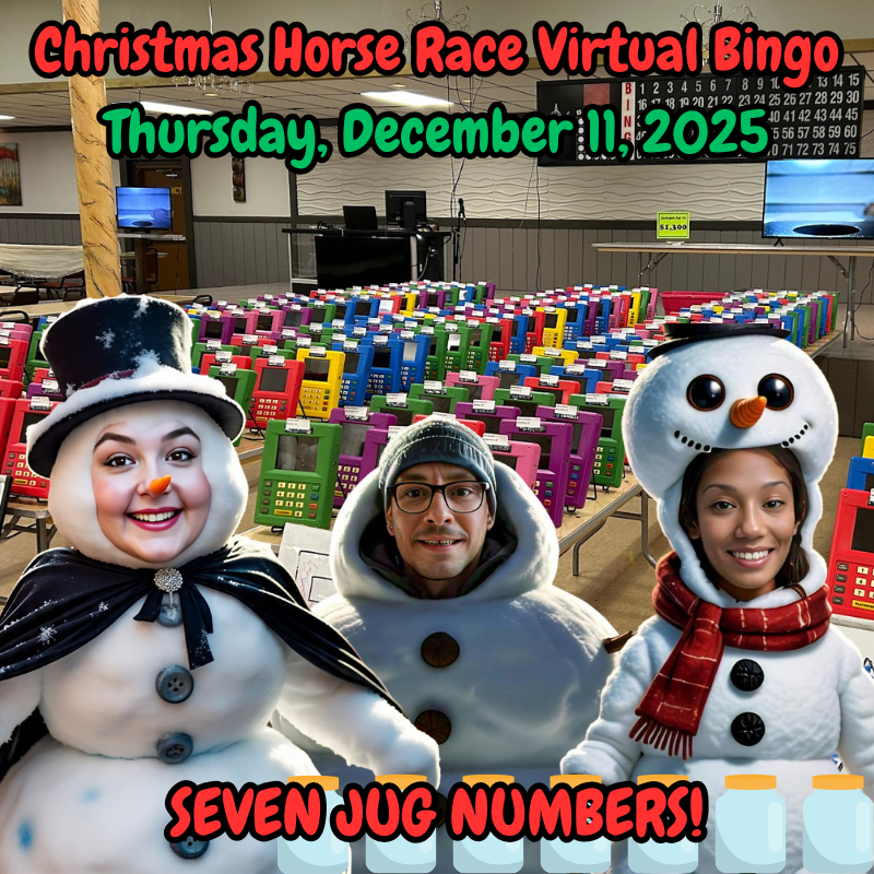 This is the virtual bingo session held at Center Stage on Thursday, December 11, 2025. We started the night with seven jug numbers and we were able to give away one of them. 3-1 – Single Bingo $150 Dorothy Seneca sherry rozier Cheryl Keefer Debra Bailey 3-2 – Double Bingo $150 Debra Bailey 3-3 -…