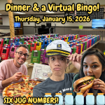 This is the virtual bingo session held at Center Stage on Thursday, January 15, 2026. We started the night with six jug numbers and managed to give away one of them. 3-1 – Single Bingo $150 Wendy Vinsko Kenny Solomon 3-2 – Double Bingo $150 Gina Houser 3-3 – Letter “X” $150 Yvette Evans 4-1…