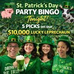 Get ready… TONIGHT is going to be one of the most fun nights of the year! 🍀 Our St. Patrick’s Day Party Bingo is here, and we’ve loaded it up with HUGE prizes and extra ways to win all night long: 💰 5 PICKS on our $10,000 Lucky Leprechaun game🐄 $10,000 CASH COW is STILL up for grabs!🎁 St. Patrick’s Day Gift Baskets to be given away🎡 Wear GREEN and get a spin on the Prize … [Read more...] about St. Patrick’s Day Party Bingo!